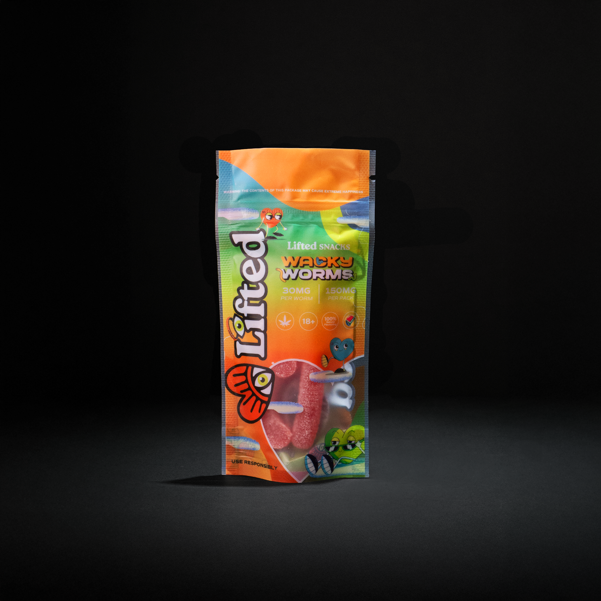 Get ready for a bold and flavourful experience with Lifted Wacky Worms! These fruity, naturally flavoured gummies pack a punch in every bite!